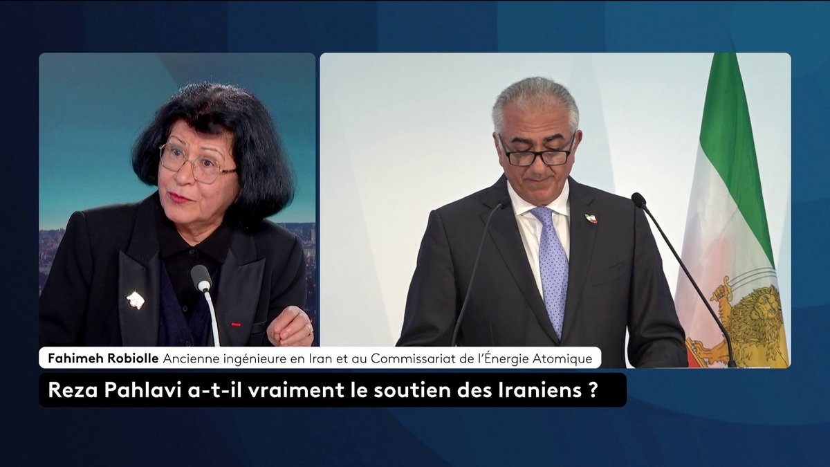 🔴 Iran : "Malgré le blackout d’Internet, Reza Pahlavi reste très suivi. Avant la coupure, son nom était scandé dans les villes. Il ne revendique pas le pouvoir, mais appelle le peuple iranien à choisir son destin", affirme Fahimeh Robiolle qui affiche son soutien. #canal16